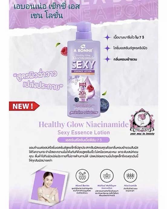 - Product: Healthy Glow Niacinamide “SEXY” Essence Lotion (HYA + 20X Berry Complex).