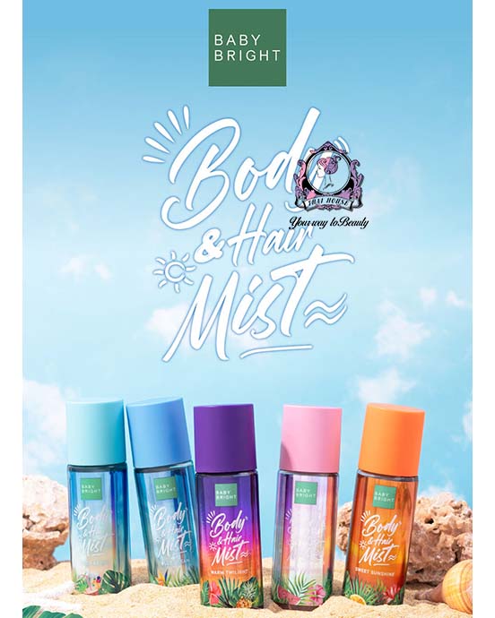 - Embrace the glowing warmth of the sunset in the boundless golden sky with Baby Bright Sweet Sunshine Body & Hair Mist. Infused with Vitamin B5 that nourishes your hair for silky-smooth, lustrous results, this body & hair mist opens with a sharp, zesty burst of Citrus Fruits with hints of vibrant fruity sweetness before descending into sensual, comforting base notes of Musk and Amber, flawlessly capturing the timeless allure of the golden hour.