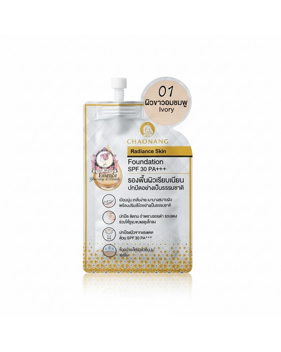 Chaonang Radiance Skin Foundation SPF 30 PA+++ in shade 01 Ivory. A lightweight foundation with Hydra Essence for a natural, radiant finish. Provides sun protection.