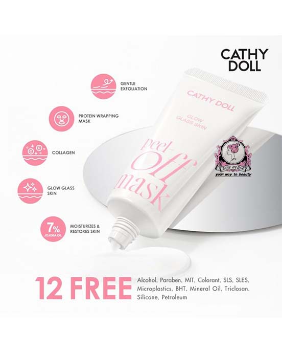 Cathy Doll Glow Glass Skin Peel-Off Mask is a peel-off serum mask that gently exfoliates the skin. Enriched with Mandelic Acid, Glycolic Acid, and Bromelain, it helps reduce dark spots, even out skin tone, and reveal brighter, more radiant skin.