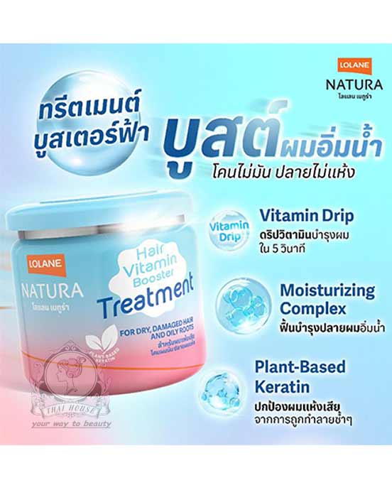 LOLANE NATURA Hair Vitamin Booster Treatment for dry, damaged hair and oily roots with plant-based keratin to repair, strengthen and control excess oil. Rich mask delivers deep hydration, smooth shine and long-lasting frizz control—perfect for weekly repair.
