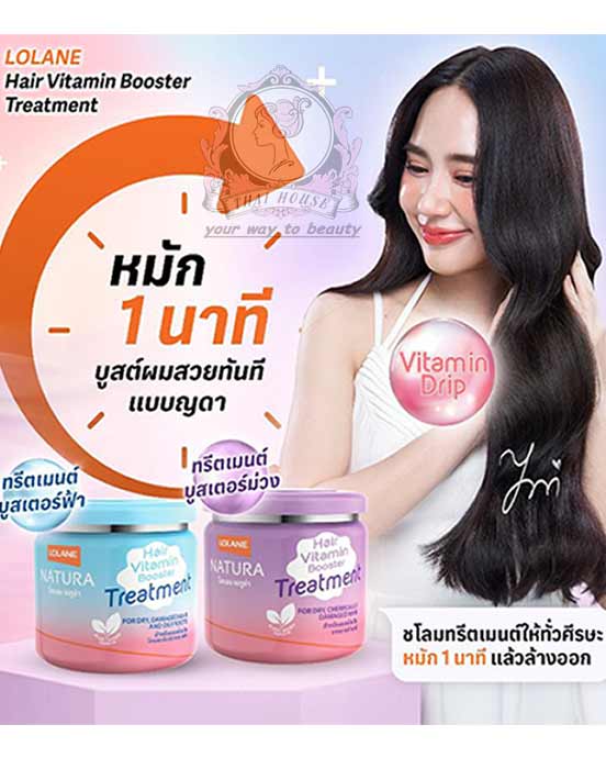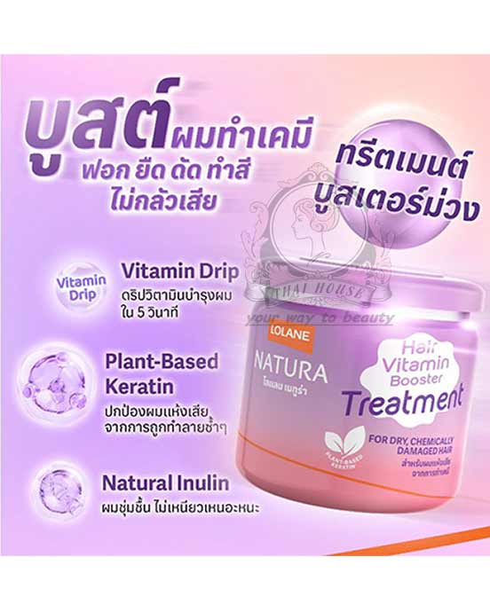 LOLANE NATURA Hair Vitamin Booster Treatment for dry, chemically damaged hair with plant-based keratin to repair, strengthen, and add smooth shine. Rich, salon-like mask that delivers deep hydration and frizz control—perfect for weekly repair.