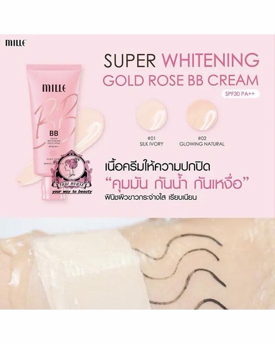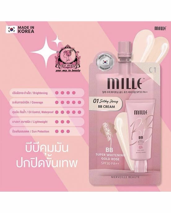 - Product name: MILLE Super Whitening Gold Rose BB Cream SPF30 PA++ (Shade 01 Silky Ivory).