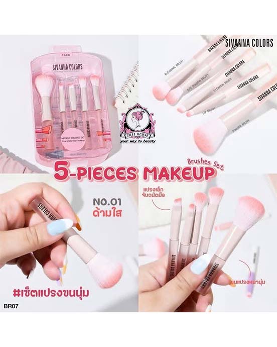 - Complete 5-piece brush set for everyday face and eye makeup.