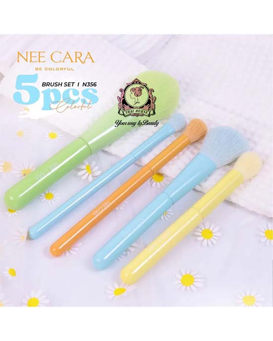 NEE CARA 5PCS Makeup Brush Set N356 includes essential brushes for face & eye makeup, helping you blend powder, blush, and shadow smoothly. Colorful, lightweight handles—ideal for everyday use and travel.