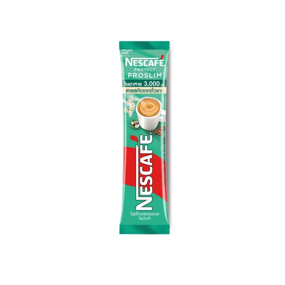 NESCAFÉ Protect Proslim is an instant coffee mix formulated with plant protein and dietary fiber, offering a smooth coffee taste with lower fat content. Designed for daily coffee enjoyment with added nutritional support.
