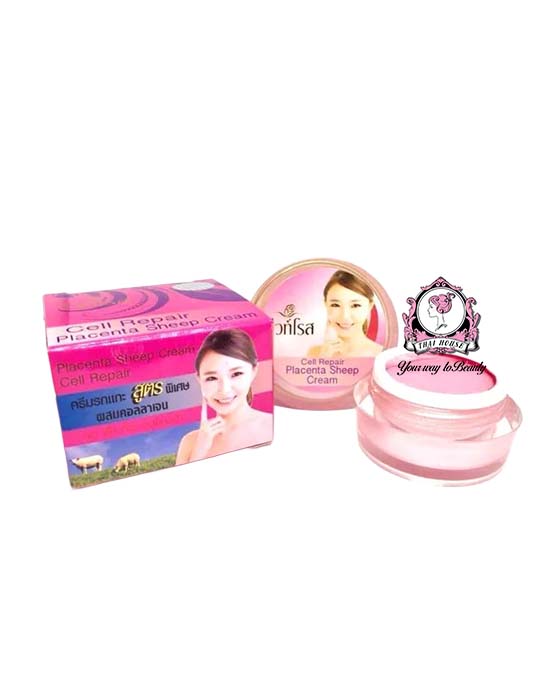 Sheep Placenta Cream Collagen Cell Repair White Rose Placenta Cream blended with collagen formula helps reduce melasma, freckles and dark spots. Creamy texture, color and aroma.