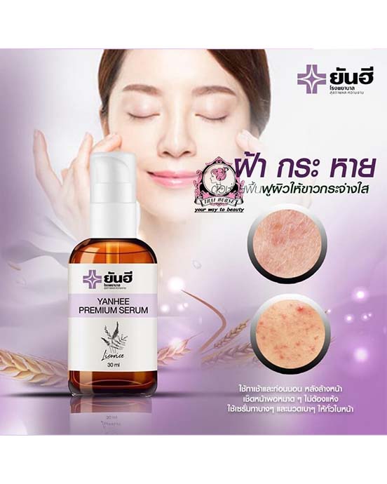 Yanhee Premium Serum is a potent serum designed to brighten and rejuvenate the skin.